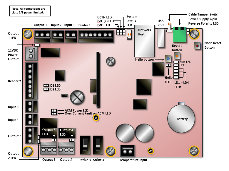 The options are listed below for supplying power to the MicroNode Plus for all peripheral devices, including strikes, readers, and other output devices such as Request to Exit (REX) devices, and alarm sounders.